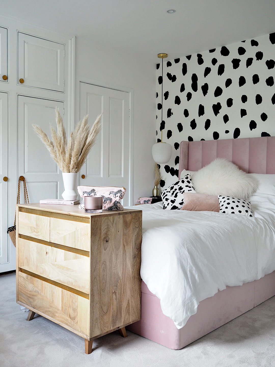 I hunted high and low for the right shade of carpet – our bedroom features some bold patterns so I knew it had to be neutral to suit the rest of the room, I also knew that the off white laminate complimented the rest of the room perfectly previously, so this is the colour that I based my search on.  Plus, white white would have been really unpractical. Whilst the colour was a priority, I wanted to make sure the texture was right – soft, fluffy and luxurious underfoot, but without looking too velvety and shiny. I ordered samples online, went into the big popular high street carpet stores, but I couldn’t’ find what I wanted – until I came across Elements London.
